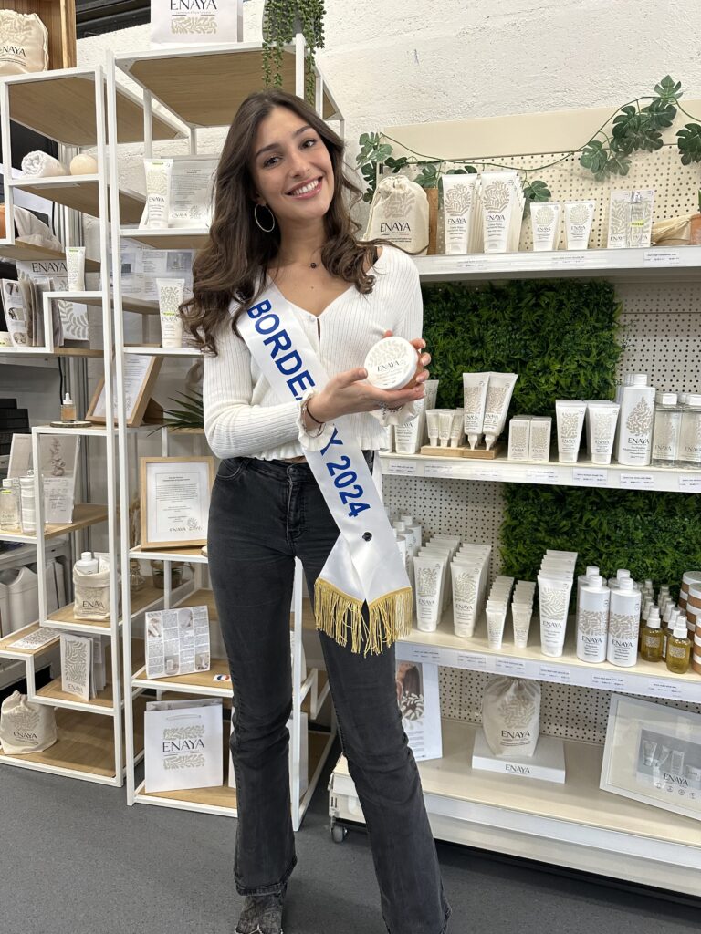 Notre ambassadrice 2024, Alizée SOMOLINOS a récemment eu le plaisir de se rendre chez notre partenaire cosmétique Enaya pour un
