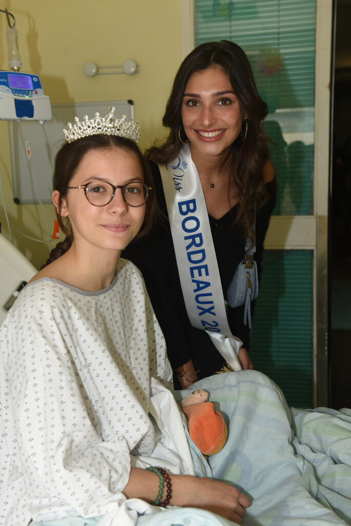 Alizée SOMOLINOS, Miss Bordeaux 2024, s’est rendue à l’Hôpital des Enfants du CHU Pellegrin, avec l’association 1 maillot pour la